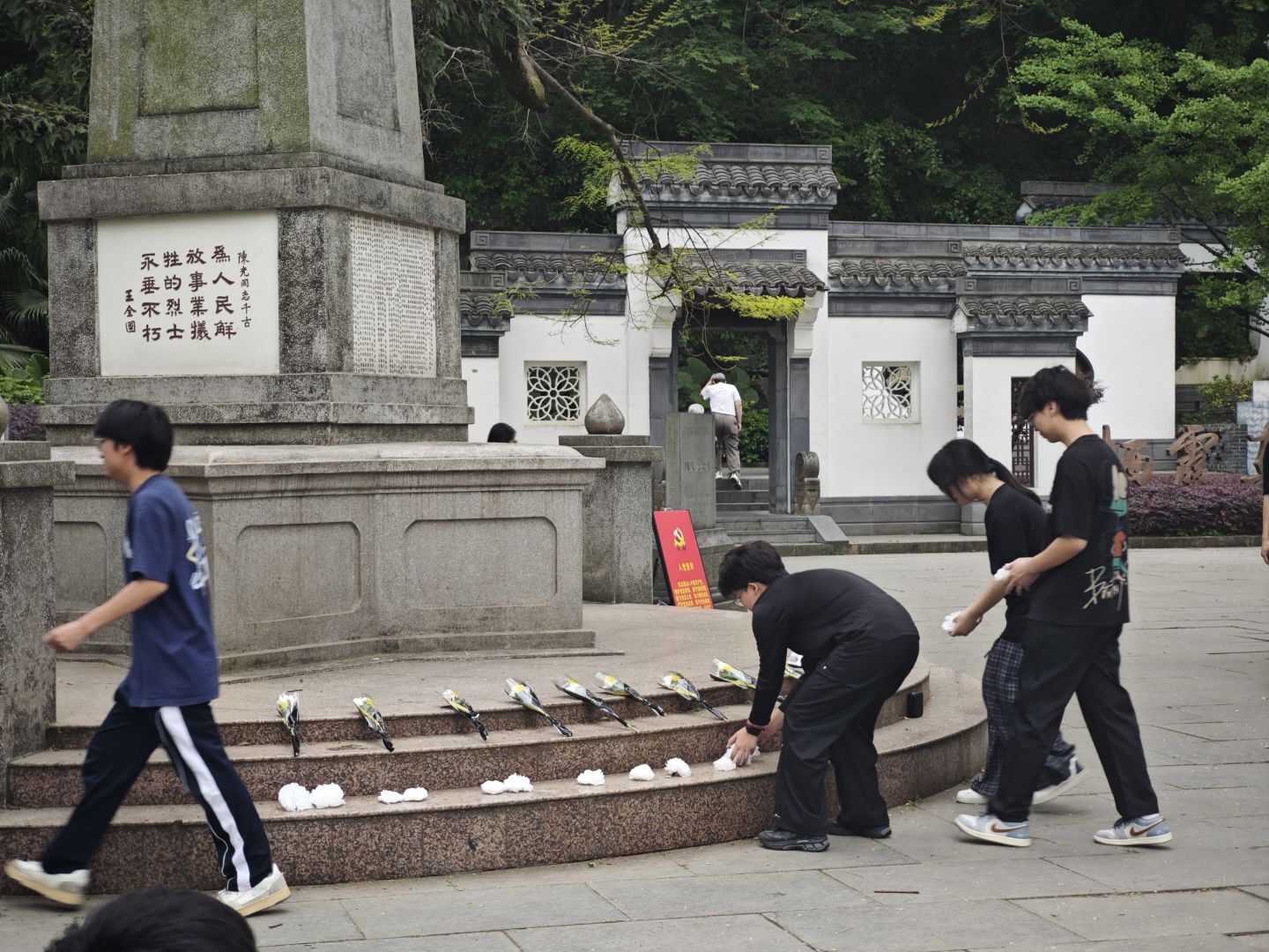 陈光烈士纪念塔是广西壮族自治区文物保护单位,塔高7.5米,以五角星为基,顶部饰红色五角星,象征革命精神永存。活动中,师生列队肃立,齐唱国歌并默哀三分钟,深切缅怀陈光烈士领导桂北游击队、开辟地下党工作,最终为桂林解放英勇牺牲的光辉事迹。学生代表以诗朗诵追忆烈士壮举,并敬献手工折叠花朵表达崇敬之情。仪式结束后,师生自发清扫纪念塔周边环境,擦拭碑文、整理场地,以实际行动维护红色教育基地的庄严。