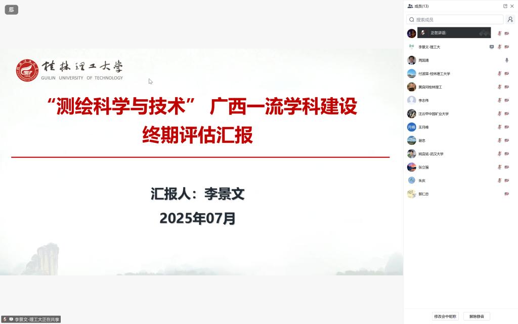 2025年7月9-10日,学院组织召开了“测绘科学与技术”广西一流学科建设终期评估评审会,会议邀请到到国内测绘领域多位权威专家参会,专家们凭借深厚专业背景和丰富学术经验,对学科建设成果进行评审,并为未来发展建言献策。
